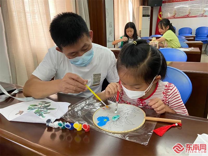 “巧手绘扇享清凉”庆六一活动现场(杏北社区新时代文明实践站供图) 文艺汇演 益“童”成长 为给孩子搭建一个培养能力、展现才华的舞台,让孩子们过个有意义的儿童节,27日,深青村新时代文明实践站举办“六一缤纷会,童心伴我行”文艺汇演活动。现场,孩子们用舞蹈、合唱、诗朗诵、讲故事等丰富多彩的节目,载歌载舞、放飞梦想,展现了新时代青少年儿童朝气蓬勃的面貌,诠释了精神文明建设沃土孕育美好童心的成果。 28日,海凤社区新时代文明实践站携手辖区共建单位,为辖区孩子们准备了一场生动活泼、妙趣横生的六一儿童节文艺汇演。古典舞《唐宫夜宴》、武术表演《中国功夫》,还有蓬勃向上的篮球少年……现场,孩子们用一个个精彩的节目,表现出少年儿童拼搏奋斗、追求梦想的精神面貌,也展现了新时代少年的风采。除了丰富多彩的节目,现场还有不少妙趣横生的小活动,让孩子们在嬉闹中感受到科学奇妙。 同日,孙厝社区新时代文明实践站举办“童心向党 筑梦未来”六一文艺汇演,吸引近两百人观看,丰富了辖区儿童的业余文化生活,筑梦孩童振翅飞翔。 为培养儿童的兴趣爱好,丰富孩子的课后生活,展示儿童风采,27日,宁宝社区新时代文明实践站携手集美区少儿图书馆开展儿童绘画比赛。小朋友们化身小小画家,挥洒天马行空的想象,用色彩描绘幸福生活。 此外,杏北社区新时代文明实践站组织“巧手绘扇享清凉”庆六一活动,孩子们奇思妙想填充色彩,充分激发孩子们的想象力和创造力,在斑斓世界里享受童年欢乐时光,描绘对未来无限憧憬。