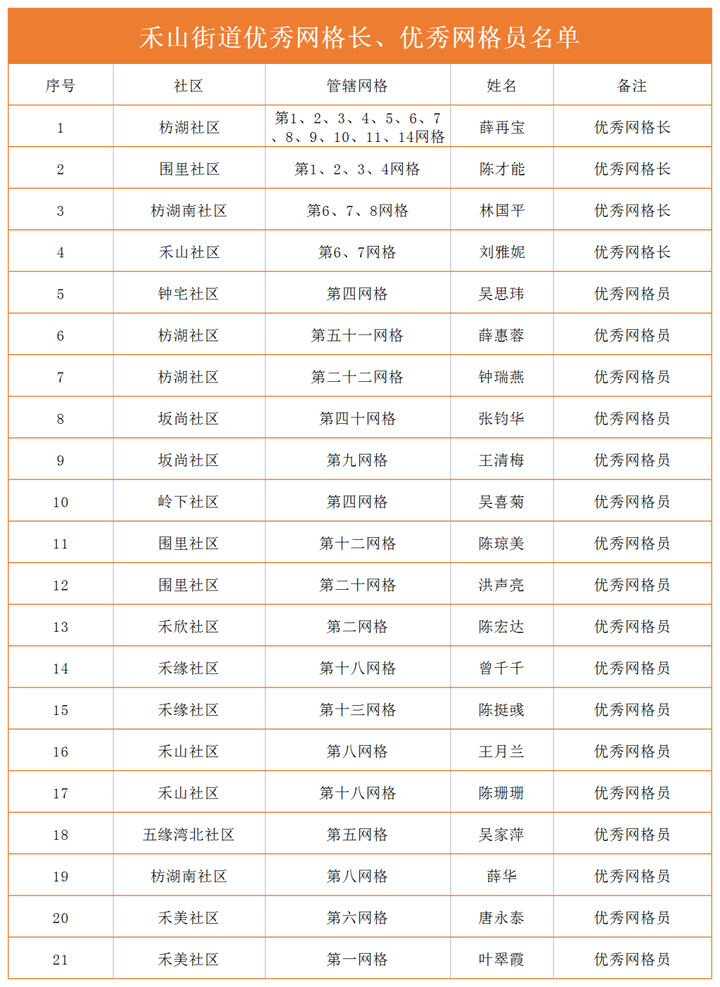除了2名金牌网格员外,禾山街道还获评4名优秀网格长、17名优秀网格员。