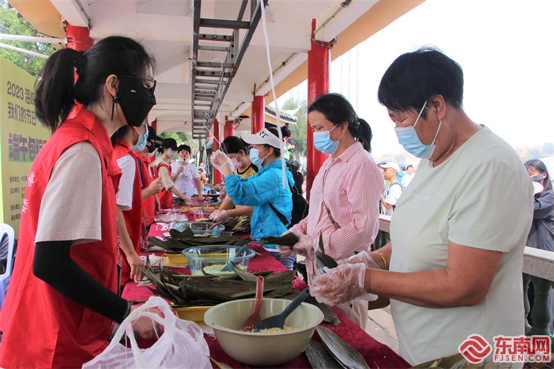 包粽子大赛现场(东南网记者 李霖 摄) 亮点3 动手包粽子 传扬好家风 为进一步挖掘传统节日文化内涵,传承端午佳节传统习俗,今年龙舟文化节系列文化活动之一的包粽子大赛特别邀请了文明家庭共同参与,在这一传统民俗活动中,用优秀传统文化浸润好家风,以良好家风涵养社会文明新风。 家住灌口镇上头亭社区的陈毓妹家庭在2021年获评福建省最美家庭。3日,她和家人一起参与了此次包粽子大赛。尽管成绩不太理想,她还是显得很开心,“这是一个很好的机会,一方面感受传统文化、习俗,一方面又是很好的亲子时光。”陈毓妹说,一直以来,全家人都注重言传身教,齐心构建好家风,此次能受邀来参加活动,她表示很荣幸。她说,家庭是社会的细胞,希望更多家庭向善向美靠拢,共同构建良好社会风尚。