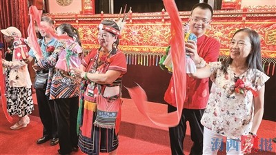 台胞体验布袋木偶戏。记者 陈怀安 摄 海西晨报讯(记者 陈翠仙 潘薇)位于曾厝垵的弘晏庄木偶艺术馆里,展示着两岸琳琅满目的精致木偶,有台湾霹雳布袋戏中高达七八十厘米的人物角色,也有套在手上的各色布袋木偶,还有形态各异的提线木偶……各色木偶展现了两岸共同的文化符号。值此海峡论坛15周年之际,6月8日,首届海峡两岸同根文化艺术节之两岸布袋木偶艺术节举办,两岸上百名布袋木偶艺术家、爱好者齐聚一堂。 其中,海峡两岸布袋木偶艺术展览以“同根同源 创新发展”为主题,展出两岸传统古典布袋木偶艺术和台湾创新时尚霹雳木偶艺术,展览将持续至6月28日。 两岸木偶艺术团体同台展示 源于晋,承于唐,兴于宋,盛于明清的布袋木偶戏是闽台两岸优秀的传统民间艺术,在明清时期随先民传入台湾。百年来,两岸布袋戏班在海峡间舟楫往来,有如文化脐带血脉不断,同根同源,一脉相承。“我们邀请到了12个两岸布袋木偶戏团体,包括台中‘声五洲木偶剧团’、‘升平五洲’金光布袋戏、漳州木偶剧团、泉州木偶剧团等,阵容是历年最大的。”弘晏庄木偶艺术馆创办人、福建布袋木偶戏(厦门)省级代表性传承人庄晏红说,“我们将在海峡论坛期间,首次推出沉浸式多媒体金光布袋木偶戏,带给观众一场空前精彩的木偶戏视听盛宴。希望能乘着海峡论坛的‘东风’,扩大两岸民间交流,把木偶艺术节做成具有影响力、常态化的两岸文艺品牌,加强两岸交流合作,为两岸曲艺人才搭台唱戏提供一个良好的平台。” 据悉,艺术节除海峡两岸布袋木偶艺术展览外,还有闽台布袋木偶戏展演、两岸木偶艺术直播等精彩活动。本次活动的发起人之一,海峡同根文化艺术发展有限公司董事长李学明说:“两岸布袋木偶艺术节,是今年我们海峡两岸同根文化艺术节的‘重头戏’。此外,我们还将推出两岸民间工艺精品展、两岸龙狮民俗文化交流大会等,加强两岸文化交流,打造两岸文艺品牌,推动两岸同根文化守正创新。” 布袋木偶勾起台胞童年回忆 舞台上,演员们手掌套入木偶中,灵活转动的手指在方寸之间演绎出唱、念、做、打,惟妙惟肖的表演令台下的两岸观众叹为观止。来自台中的黄素丽感慨道:“这次参加活动让我回味起儿时的记忆,现场的布袋木偶演员太厉害了,手非常巧。”第一次来厦门参加活动的她,还计划着多走访厦门的景点,了解闽台民俗文化。 在展厅里,有不少台胞仔细端详着木偶展品,并拿出手机拍照留念。台胞黄秀敏说:“大陆艺术家把作品做得这么好,木偶的面部细节、戏服等都做得很精致,我觉得很棒。” “我们小时候就喜欢到戏台,看布袋木偶戏师傅表演,他们只用两只手撑起一台戏。”台湾中华少数民族艺术文创促进会理事长朱王碧玉说,“我们深深感受到两岸同文同种,宛如一家人般的感觉,希望这个传统文化能发扬光大,我们能持续与大陆同胞进行常态性的交流。” |