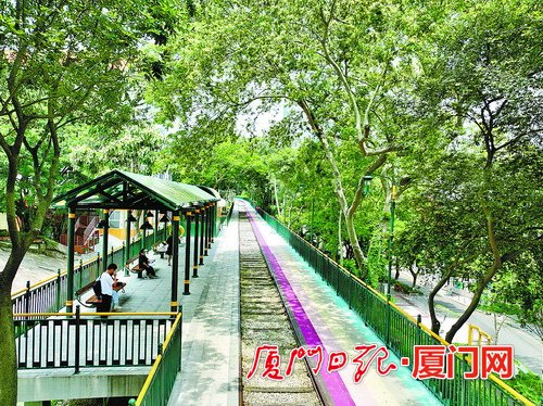 “1955火车儿童小乐园”成了傍晚孩子们的聚集地。 厦门日报讯(文/记者 吴燕如 图/记者 卢剑豪)厦门人熟悉的铁路文化公园换新颜啦!近日,完成景观提升的铁路文化公园全线开放,等着您带上家人好友去打卡。此次改造历时半年多,思明区市政园林局通过拓宽步道、新增景观节点、提升附属设施、翻新绿植等举措,让厦门铁路文化公园焕发新活力,打造融合铁路文化、科普教育、娱乐休闲于一体的特色公园。 亮点1 打造4个社区休闲街角公园 沿路漫步,每走到一个大路口,便可看到市民外出遛娃、邻里“话仙”的场景。立足居民需求,此次改造充分利用街角地带,分别在思明南路、育青路口、万寿路口、文屏段打造了4个社区休闲街角公园,因地制宜增设座椅、火车主题景观小品等,为附近居民增添休憩好去处。 在育青路口往植物园方向约150米处,特意打造“1955火车儿童小乐园”,让孩子们有了专属娱乐小天地。 亮点2 设置一节21米多长火车车厢 步入铁路文化公园,代表绿皮火车的绿、黄主色调鲜明地贯穿公园空间设计,营造了浓浓的年代感。沿线可见经典的铁路图案标志、该铁路建设年份“1955”、火车驿站、站台、站牌等,在文屏段还设置了一节21米多长的火车车厢。融入铁路文化元素的设施、景观小品,将让您沉浸在铁路文化氛围中,重拾对绿皮火车的记忆。 有趣的是,公园还增添了一位“小伙伴”——身高约90厘米的卡通人物“呜呜”,这是专门打造的铁路文化公园IP人物。人气很旺的鸿山隧道,更新了灯具,更换了灯箱,增加以火车主题为主的彩绘,让老铁路的年代感瞬间“爆棚”。 亮点3 沿线步道基本由单向改成双向 改造从迫切的通行需求入手——大部分步道由单向改为双向。 “以前只有一侧是步道,来往的人一多,走起路来就不顺畅。现在改成双向道,路好走,心情也更好了。”家住文园路的王先生说,步道改造让他很满意。 铁路文化公园作为散步、慢跑的绝佳选择,此次改造在原先一侧的大部分绿化带上进行拓宽,增设了防滑耐磨的石材步道。公园沿线步道基本从单向变成双向,让通行空间更宽敞。同时修复原有破损的木栈道和路面。 其中,最有特色的一段路当属“彩虹跑道”,从育青路口电业小区段向植物园延伸,总长450米,亮丽的一抹色彩成为公园一景。 |