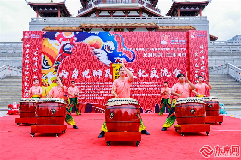两岸龙狮民俗文化交流会在厦门集美塔鸣锣开幕