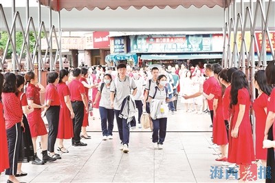金尚中学考点,家长穿旗袍送考。记者 唐光峰 摄 海西晨报讯(记者 许蔚菡)昨天,福建中考开考。厦门4.74万余名初三学生奔赴全市96个考点,考试将持续两天半。相比去年,今年厦门初三考生增加了近4000人,是自2018年以来增幅最大的一年。 今年中考不少考点氛围浓厚,喜气洋洋的红条幅、红地毯、凯旋门,家长和老师的红衣、旗袍,寓意“夺魁”的向日葵、温暖有爱的拥抱等,成为不少考点的“标配”。 持平常心的家长也不在少数。在莲花中学,一名家长告诉记者:“平常心就好,把中考当成平时考试正常发挥就好。” 记者获悉,中招计划册会在7月初下发,届时各校招生计划都会公布。 根据厦门市教育局的消息,今年公办民办普高学位约为2.8万个,普高录取率将超过60%,去年是58%。按照省教育厅统一部署,考试结束后,成绩公布预计在7月中旬,随后是填报志愿,录取、发放通知书预计在8月。 镜头 市音乐学校: 走过高“粽”门收获祝福 “星河四班,中考扬威”“考的都会,蒙的全对”“利剑出鞘,尔必成功”……昨日,在厦门市音乐学校,加油牌沿着红地毯一字排开,学子们自信满满、笑容满面地走进考场。 据学校介绍,除了昨天隆重的送考仪式外,学校此前还开展了一场别开生面的端午“一顶高粽”活动,让孩子们头顶粽子,走过高“粽”门。(记者 许蔚菡) 槟榔中学: 暖心守护学子决战中考 昨日一早,在槟榔中学校门口,交警们提前对校园周边道路组织优化,全力维护交通秩序;校领导、班主任和科任老师们换上“红色战袍”,和学子们一一击掌,送上祝福;小卖部的老板也为同学们送上免费的矿泉水,为学子们加油鼓劲。最美丽的风景当属身着旗袍或红T恤、手持向日葵的家长们,他们希望孩子们能“旗开得胜”“一举得魁”。(记者 王世伟) 蔡林学校: 三色加油标语一路相伴 昨日一大早,集美区蔡林学校的老师们手持祝福牌,为考生们加油。在校园里随处可见红绿橙三色加油标语,三种颜色分别寓意“开门红”“一路绿灯”“心想事橙”,上面写着“思如泉涌答题顺,考场之上锋芒现”“轻装策马青云路,人生从此驭长风”“唯愿你妙笔生花,书写人生新华章”等祝福语。 此外,学校还准备了“过门必胜”的“龙门”,希望学子能“一跃龙门”;设置了十多米长的心愿祈福彩带,从校外一直到校内,学生和家长都能书写心中祝福。(晨报记者 宗琴) 温馨提醒 今天虽然是星期天,却是上班日,考生最好提前出行,避免道路拥堵。 按照往年规定,考生可提前50分钟到考点,考前30分钟进入考场。每科目开考15分钟后,迟到考生不得进入考点参加当次科目考试。 要特别注意的是,今天下午的英语科目,开考前15分钟即14:45禁止迟到考生进入考场。14:45-15:15,迟到考生由专人引导至考点主考室,待听力考试结束,才可进入考场参加英语科目考试。 考生入考场后,不得提前动笔作答。从去年开始,考场规则明确要求,不得提前动笔在草稿纸上书写公式、外语单词等任何字迹。 每科目考试开考30分钟后,考生可交卷离开考场。不过,考生提前交卷出场后,不得再进场续考,也不得在考场附近逗留或交谈,且不得离开考点,须在警戒线外安静等待,待考点通知后方可离开。 明天上午将进行道德与法治+体育与健康基本知识考试。其中,道德与法治科目在试卷、答题卡的前半部分,体育与健康基本知识在试卷、答题卡的后半部分,考生切勿漏答。 明天下午,还有5.1万名初二学生将参加地理和生物“小中考”。(记者 许蔚菡) |