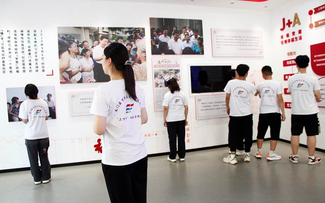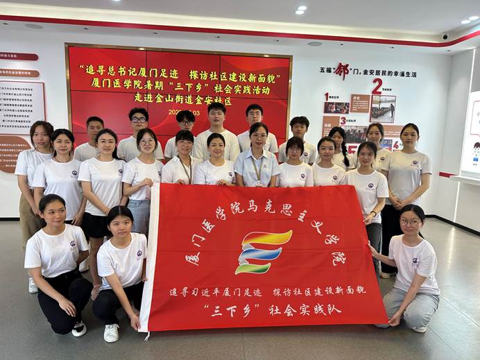 追寻领袖的足迹:走进社区 感悟使命担当 为深入开展学习贯彻习近平新时代中国特色社会主义思想主题教育,学习习近平总书记在厦门“近邻”文化的故事,7月3日上午,厦门医学院马克思主义学院教师石慧琼、张雪玲带领大学生暑期“三下乡”社会实践队走进金安社区,追寻习近平总书记的足迹,以实地教学、实践服务的方式,上了一堂难忘的大思政课。 “2010年9月习近平总书记(时任中共中央政治局常委)来到厦门市金安社区考察”,社区徐主任介绍道,“他当时考察完社区后,就做出重要指示‘不断地提高人民群众的幸福感,是党和政府应该做的事情,要长期做下去,永远做下去’。”实践队员边参观社区边认真聆听徐主任的介绍。同学们还了解了金安社区“党建+志愿服务”模式及其十年的美丽蜕变。