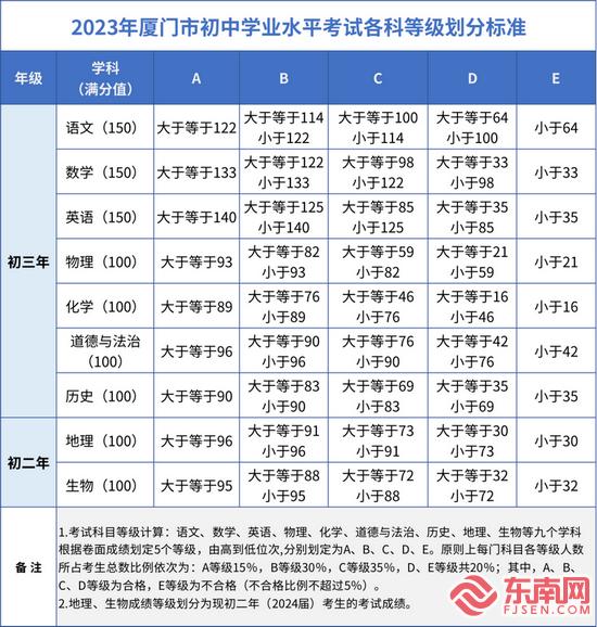 2023年厦门中考各科等级划分标准公布 15日起填报志愿