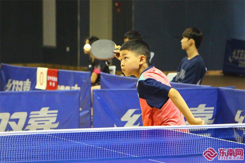 小球员发球聚精会神(东南网记者 李霖 摄)