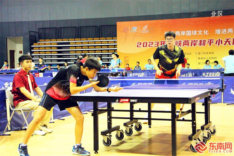 2023年海峡两岸和平小天使乒乓球交流赛现场,两岸青少年以球会友。(东南网记者 李霖 摄) 东南网7月18日报道(记者 李霖 实习生 杨馨怡)手拉手,心连心,同挥拍,一家亲。7月17日下午,“传承两岸国球文化,增进两岸同胞情谊”2023年海峡两岸和平小天使乒乓球交流赛在厦门市体育中心拉开帷幕。近200名两岸青少年齐聚一堂,通过小小银球,传递浓浓两岸情。 此次活动由中华全国台湾同胞联谊会、福建省台湾同胞联谊会、厦门市台湾同胞联谊会、厦门市教育局、厦门市体育局、集美区政府、厦门市海外联谊会主办。活动共吸引海峡两岸40支球队参加,其中台湾16支、澳门2支。 赛场上,小球员们热情高涨、斗志昂扬,接球、扣杀,全力发挥自身水平。赛场边,不时传出阵阵喝彩。来自高雄的教练刘军告诉记者,大陆小球员们纯熟的技术、超强的心理素质让他刮目相看。 “能够获得这次机会,小朋友们都很投入、很积极。”高雄市体育总会桌球委员会总干事曾昱霖表示,此次交流赛让孩子们能以球会友、切磋球技、积累经验,同时拓展了眼界,希望未来可以多一些这种机会,让孩子们更加了解大陆。 当天,世界冠军郭跃华和两位台湾小球员一起为赛事开球,高雄中岗高中学生邹胜勋就是其中之一。能与世界冠军“过招”,邹胜勋直呼“太难得”。他告诉记者,他的阿公(爷爷)就是从福建前往台湾,此次参加海峡两岸和平小天使交流活动,也是他第一次回到祖籍地。 除了乒乓球交流赛之外,两岸“和平小天使”们还深入厦门多所中小学,以及集美闽台研学总部、诚毅科技探索中心、鲸探海洋科普研学基地等,开展研学交流,启迪智慧、增进情谊,携手共筑科学梦、强国梦。 据悉,“和平小天使”交流活动自1992年创立以来,共举办了35次互访交流,其中台湾16场、大陆19场,参与的“小天使”近3000人,涉及两岸家庭2000多个,影响两岸数万人。 “在厦门,到处都可以听到一样的乡音,在这里我可以大声地说——答给厚、甲扒魅(闽南语:大家好、吃饱了吗)。”来自台湾台中的“小天使”詹筱筑表示,虽然是第一次来厦门,但这里让她不觉得自己是出门在外,她将多多拍照打卡,将此行分享给家人和朋友。 “这是台湾青少年了解大陆的一个窗口,也是两岸青少年交流的一个平台。”厦门市台湾同胞联谊会党组书记、会长张劲秋表示,青少年有着相仿的年龄、相近的兴趣和相通的思维,通过“和平小天使”交流活动,更容易有认识、有提升、有受益,使之成为收获友谊之旅、欢乐之旅、共鸣之旅。 海峡两岸和平小天使交流活动是2023年“相聚厦门”两岸青少年文化交流周系列活动之一。交流周期间还举办“海峡两岸龙狮交流赛”“台湾青年教师闽南文化研学营”“两岸青少年文化交流联欢晚会”等活动。