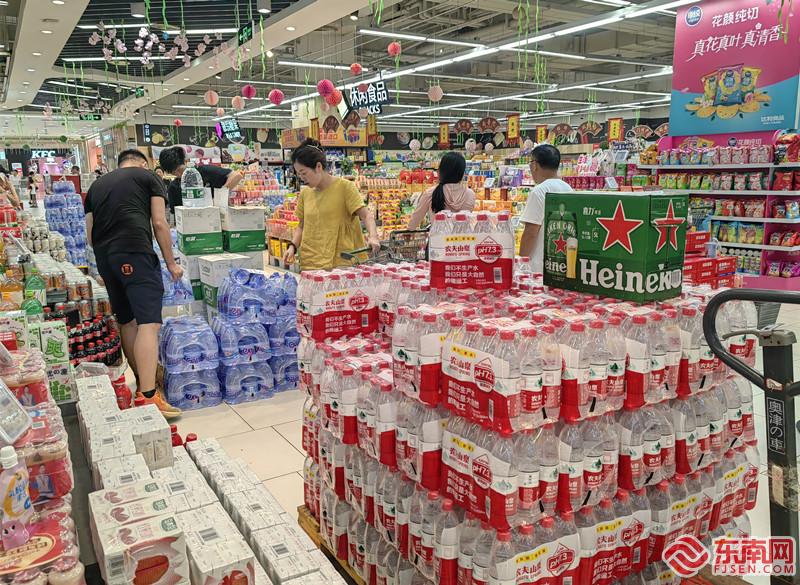超市货架商品齐全,市民在选购饮用水。(东南网记者 夏菁 摄) 东南网7月26日讯(记者 夏菁)这几天,市民关注台风“杜苏芮”动向的同时,也开始担心台风期间厦门市场供应情况。26日,记者从厦门市商务局获悉,厦门市昨日蔬菜供应量3075吨,生猪2619头,家禽屠宰6214羽,水产交易量689吨,蛋品供应量79.1吨,总体供应充足。今天,记者走访多家商超,货架商品齐全,未出现缺货现象。 据了解,台风预警发布以来,厦门市商务局牵头组织做好主要副食品市场供应保障,通过市场保供“加法”保障+、调运+、储备+,全方位守护厦门市民菜篮子。 近日来,厦门市商务局加强监测预警,持续对厦门主要副食品的供应量价进行日监测。同时,自7月24日起,厦门市商务局已向有关部门、重点保供企业、储备企业发布通知,明确职能分工及应对措施,畅通联络机制,随时做好启动《厦门市主要副食品市场供应保障应急预案》准备。 厦门市商务局指导闽夏、中埔市场运销户增加蔬菜调运量,目前闽夏市场日进场蔬菜4500吨(其中供厦蔬菜量超2000吨)、中埔市场日供厦蔬菜量超800吨;指导夏商与外埠生产基地紧密合作,可为全市提供1600头/天的生猪供应量、700吨/天的蔬菜供应量。同时,启动主要副食品(肉菜)调运供应量补贴机制。 目前,市级重要副食品储备库存充足,其中,冻猪肉4000吨、芽豆150吨,随时可供调用;厦门保供储备“家底”还有耐储蔬菜商业储备4000吨,500吨水产品、100吨冻禽产品商业储备,可满足全市应急保供需求。