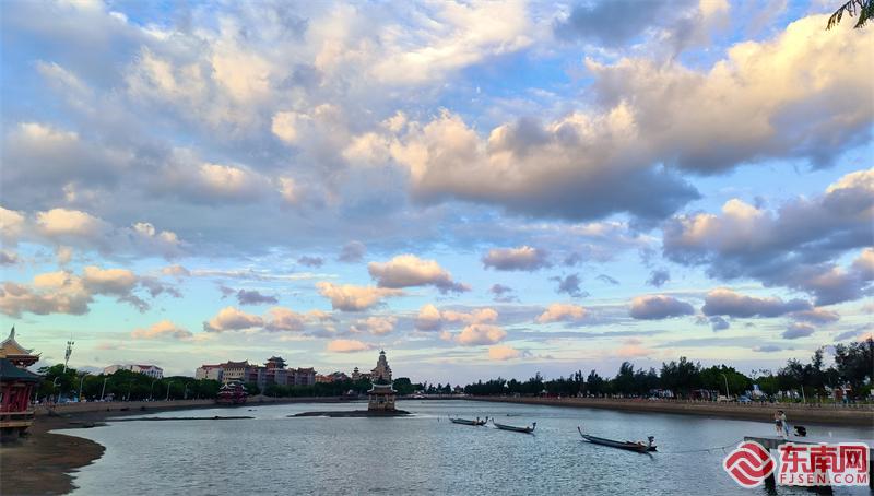 集美龙舟池上空,朵朵彩云美不胜收。实习生 黄倩怡 摄