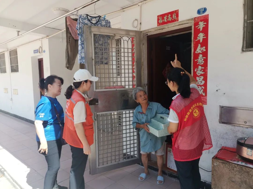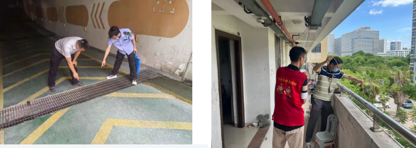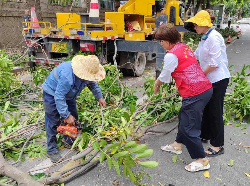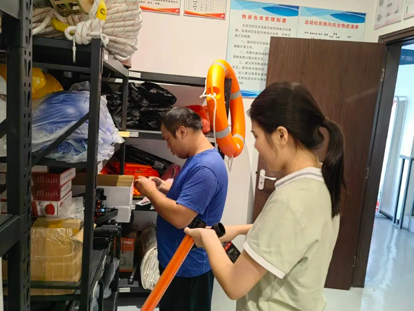 社区工作人员开展辖区巡查工作,对地下车库、下穿通道、工地、危房、渔船等易涝点、地灾点做预防处置,针对存在安全隐患的地点拉警戒线;以小区为单位召集热心居民骨干,对小区居民进行防台宣传,针对孤寡、独居老人及残疾人等特殊群体进行入户协助,做好基本物资储备、阳台规整等工作。