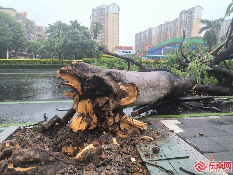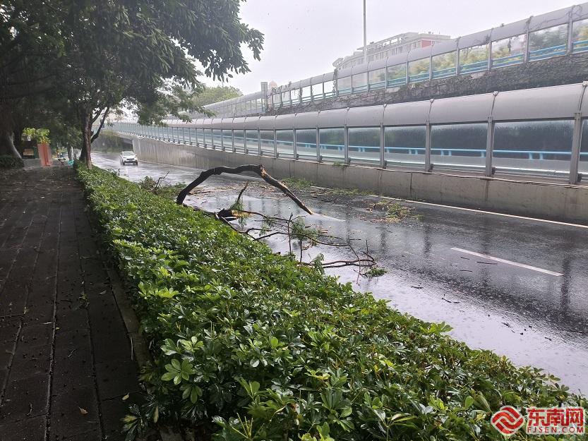 龙山路附近多处树木倒伏,阻断道路。(东南网记者 卢超颖 摄)