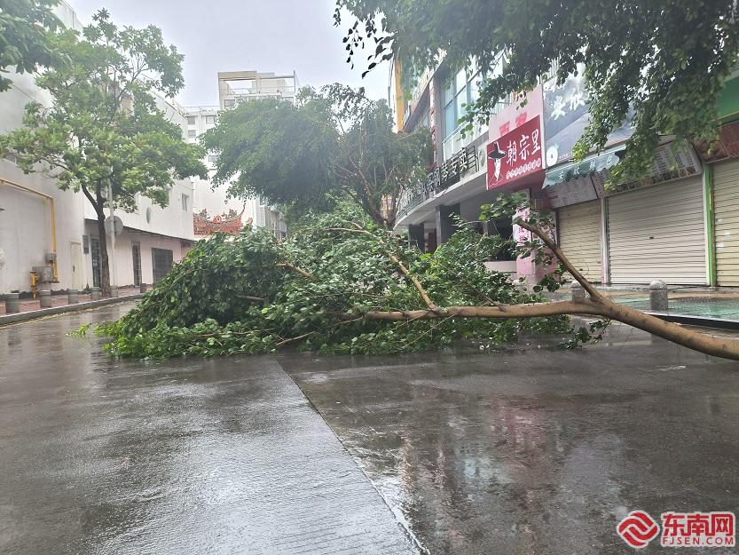 祥店里附近,树木倒伏,阻碍通行。(东南网记者 李奇 摄)