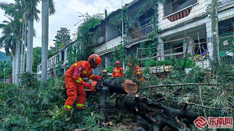 台风刮倒大树阻碍交通 森林消防迅速到场“清障”