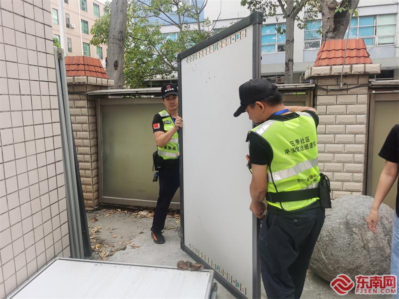 7月26日晚,三秀社区巡逻队骨干自发组织对老旧小区进行巡查,排除安全隐患。(集美区新时代文明实践中心供图)