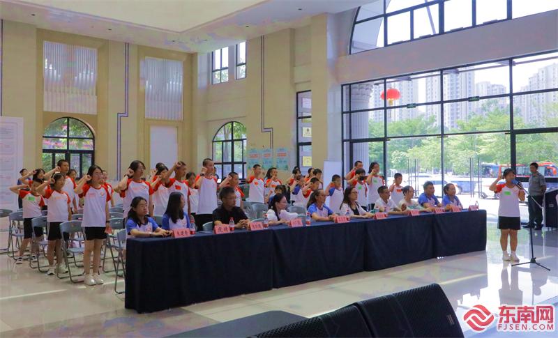 营员们举起右拳宣誓(实习生 黄懿焘 摄)