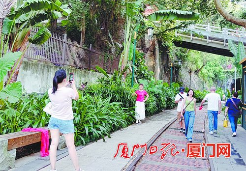 市民游客在铁路文化公园游玩。 厦门日报讯 (文/图 记者 黄怀)暑假是旅游旺季。除了鼓浪屿、曾厝垵等众所周知的旅游热点景区,厦门还有许多小众公园值得一逛,比如铁路文化公园,是炎炎夏日里一处理想的避暑打卡地。 铁路文化公园是由已废弃的鹰厦铁路延伸线改造而成的带状公园,延绵数公里,串起金榜公园、园林植物园、虎溪岩、鸿山公园等景区。这条承载着厦门早期交通发展记忆的铁路,已经成为供市民游客休闲、娱乐、健身、轻旅游的文化公园。 记者近日来到铁路文化公园,沿着旧铁轨漫步前行,一路绿树婆娑,铁轨两旁的乔木、花灌木、树篱等形成了错落有致的景观空间,具有天然的遮阳效果,且保留了几分“野趣”。沿途还有供游客休息的石桌和长椅,不少游客坐在这里休息聊天,拍照留念。在公园散步,仿佛被一片绿意温柔地环抱,穿梭于时光隧道、世外桃源。 铁路文化公园里还有一条废弃的铁路隧道——鸿山隧道。走进隧道,凉爽宜人,就像走进天然的大空调房,让人顿感神清气爽。长约700米的隧道,有大型3D浮雕,隧道北端浮雕描述的是20世纪50年代鹰厦铁路建设时的情形,南端浮雕描述的是“和谐号”动车组从厦门驶出的情形,南北两端遥相呼应,诉说着老铁路的“前世今生”。隧道里既有极具历史感的砖墙和石拱,也有现代化的LED灯光。市民游客可以在浮雕前驻足观赏,或者在隧道里漫步纳凉,享受轻松的夏日时光。 记者看到,许多市民游客都能遵守秩序,爱护环境,但仍有个别市民游客文明意识松懈,随手乱丢垃圾。在公园长椅旁,记者看到了被丢弃的饮料瓶;在隧道里的铁轨上,几个冰激凌包装盒与景区环境格格不入。 相关部门提醒,市民游客暑期出游,请自觉把文明装进行囊,遵守公共秩序,维护文明出行的环境,为文明城市创建贡献自己的一份力量。 |