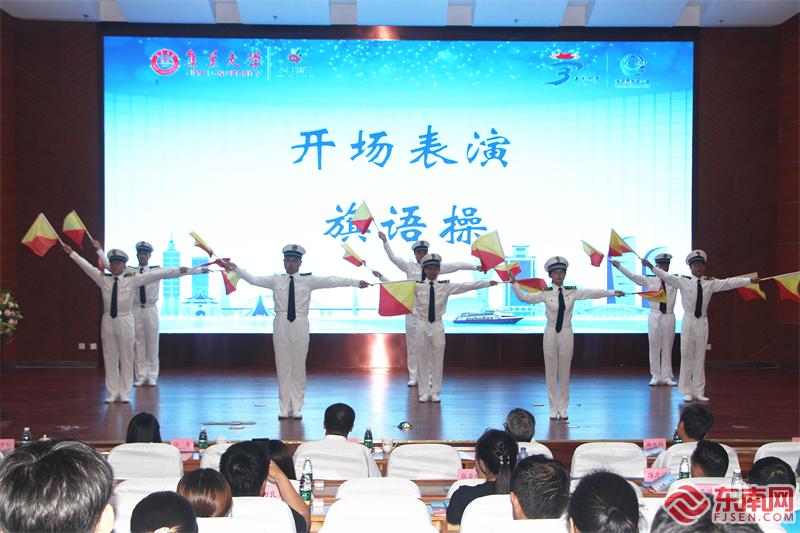 集美大学学子送上旗语操表演(东南网记者 李霖 摄)