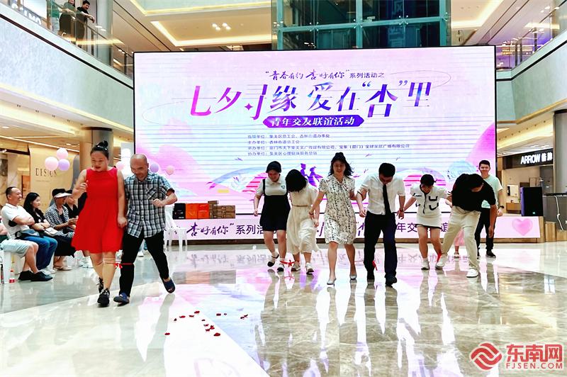 大家参与游戏互动,活动现场气氛热烈(东南网记者 李霖 摄) 东南网8月27日讯(记者 李霖)8月27日下午,由厦门市集美区总工会、杏林街道办事处指导,杏林街道总工会主办的杏林工会“青春有约 杏好有你”系列活动之“七夕寻缘 爱在‘杏’里”青年交友联谊活动在集美杏林举办,辖区近百名单身青年相聚一堂,共赴浪漫之约。 “两个人从相识、相知、相爱,步入婚姻的殿堂,直至共度一生,都需要培养爱的能力,即接触的能力、沟通的能力、共处的能力。”活动邀请华侨大学副教授、国家二级心理咨询师陈秀琼以《青青有约 与“心”同行》为主题开展宣讲,并为现场单身青年答疑解惑,助力他们培养高尚的婚恋情操,树立正确婚恋观,走好人生幸福路。 当天,“千里一线牵”“牛郎背织女”“鹊桥相会”等一系列蕴含传统文化意趣的游戏互动热闹开展,让现场单身男女在轻松愉悦的氛围中,相互熟悉、交流协作,为搭建良好社交关系奠定基础。 七夕节是传统节日中最具浪漫色彩的节日,又有着“穿针乞巧”等多彩民俗,文化底蕴深厚。当天,现场组织开展永生花团扇、手工香皂、轮胎插花等丰富手工活动,让参与者们在其中感受手工魅力,增进相互了解和默契。活动还设置了趣味寻宝环节,邀请男女搭档按照任务书寻宝并拍照打卡,为此次活动画上了圆满的句号。 主办方相关负责人表示,在七夕节之际,举办此次青年交友联谊主题活动,旨在充分发挥传统节日在弘扬中华民族优秀文化和加强思想道德建设中的载体作用,凸显七夕节爱情忠贞、家庭幸福等文化内涵,教育和引导人民群众树立正确的家庭观、爱情观、婚恋观,促进家庭和睦、社会和谐,同时,丰富辖区单身青年职工的业余生活,打造文明健康的交友平台,为他们搭建展示自我、缔结友谊的桥梁。