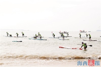 SUP桨板挑战赛。记者 唐光峰 摄 海西晨报讯(记者 傅曦颖)感受海浪、沙滩运动,留下美好记忆……8月26日至27日,思明沙滩运动嘉年华在环岛路小白楼沙滩举行。 记者了解到,作为2023思明区全民健身运动会系列活动之一,本次嘉年华共开展思明沙滩足球公开赛、思明沙滩飞盘公开赛、思明SUP桨板挑战赛等三项体育赛事,吸引了超百名运动员和沙滩运动爱好者参与,尽情体验多元沙滩运动所带来的乐趣。 “我们通过本次活动展示思明区沙滩文化资源,带动体育消费热潮,丰富厦门文体旅游内涵,助力厦门打造海上运动休闲胜地。”思明区文化和旅游局工作人员表示,思明区文旅局因地制宜探索“文体旅融合”发展新模式,结合厦门海洋特色,串联周边商圈,带动文化娱乐、餐饮购物、住宿等消费增长,打造厦门旅游时尚新风向标,促进厦门旅游发展。 本届思明沙滩运动嘉年华由思明区文化和旅游局主办,海西晨报社、厦门网承办,厦门市游泳协会支持。 思明沙滩足球公开赛 队员的热情挡不住 沙滩上,你追我赶,控球、防守、进攻、射门……沙滩足球运动员的默契配合和娴熟技巧,赢得观众阵阵掌声与喝彩。8月26日到27日,思明沙滩足球公开赛在环岛路小白楼沙滩举行。 据了解,本次比赛队员年龄跨度大,年龄最大的球员有51岁,最小的仅18岁,他们因热爱足球而结缘。“各球队除了有专业运动员,还有来自律师、大学生等群体的业余队员。”沙滩足球公开赛赛事负责人林毅说。 思明区足球协会秘书长曾明告诉记者:“今年参赛队伍质量很高,很多专业球队也来参赛。虽然比赛日天气炎热,但挡不住队员们的热情,整体赛事较有连贯性。此外,赛事后勤保障和医疗保障等方面的工作也做得比较好。” |