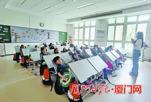 厦门市尚文实验学校为低年级孩子准备了“午休床柜”,可以让他们躺平睡觉。 厦门日报讯(文/图 记者 杨霞瑜)课桌椅“变身”午休椅、铺满午休垫的午休室、储物柜藏着午休床……又到开学季,学校的午休条件是不少学生家长牵挂的问题,学校午休是否都已实现“躺睡”?连日来,记者走访并体验厦门部分为小学生提供了午休环境的学校,一探究竟。 “半躺”派: 课桌椅变身午休椅 成年人也能躺下 翻转课桌,拉出搁脚板,调节椅子靠背……短短十几秒,学生就可自行完成午休的准备工作,实现从“趴睡”变“躺睡”。日前,记者体验了厦门市人民小学浦南校区、厦门市华师希平双语学校为孩子们准备的“半躺睡”午休环境。 在人民小学浦南校区一年(1)班教室,记者看到一体式的可躺式课桌椅简洁美观,学生可通过手摇桌子一侧的小把手调整座椅靠背,椅背后还套有一个小靠垫,躺下时可作为枕头使用。同时,随着桌子高度的调整,桌子下方的脚踏板也随之出现,学生们的课桌椅瞬间“变身”午休椅。记者体验过后发现,椅子的宽度和调整后的倾斜度,对于孩子们午休来说,恰到好处。 “之前午休趴在桌上睡觉,脖子都会酸酸的,现在可以躺着休息舒服多了,希望所有大哥哥大姐姐也能跟我们一样,躺着午睡!”一年(4)班的田辰浠开心地和记者分享午休椅的使用感受。 该校吴清裕校长告诉记者,可躺睡的课桌椅为本学期新购置,目前正在试用阶段,接下来,考虑全校推广,让其他年级的学生也可在校安心午休。 随后,记者来到为全校小学生都提供可午休课桌椅的华师希平双语学校时,孩子们正在准备午休。一年(5)班的学生施佳宸通过简单的4个步骤向记者演示了如何将课桌椅调整为135度大仰角的午休椅。 记者跟着小朋友一起操作,一手握住桌子旁的扶手往上拉,将靠背放倒,之后再把位于椅子下方的脚踏挡板拉出,仅需短短几秒,一张“床”便呈现眼前。1.75米的记者躺下,也绰绰有余。12时20分,该校小学生的午休正式开始,在老师的照看下,教室里静悄悄的,几分钟后,不少孩子已进入梦乡。 据校方介绍,该款可午休的课桌椅于今年9月开始在全校小学部使用,他们是从舒适度、安全性等方面综合考虑,最终从十几款产品中挑选了该款课桌椅。 |