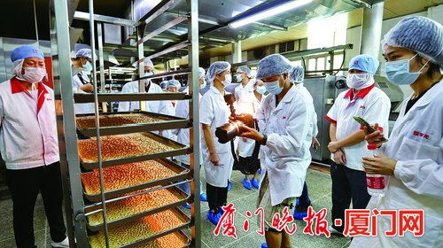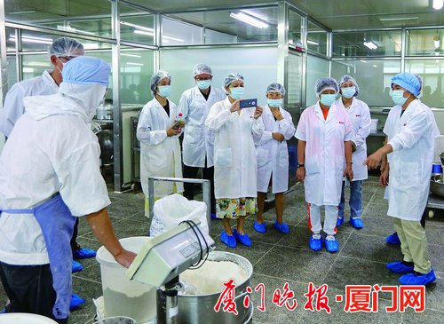 市民探访团参观检测中心。 厦门晚报讯(文/记者 吴佳 图/记者 陈立新)探访早餐生产车间,感受现代化生产作业;围观原料及成品样品检测,学习实用小技巧;“检阅”早餐原料,发现和自家用料同品牌……9月13日,由厦门早龙食品有限公司(以下简称“早龙公司”)与本报共同策划的“走进早龙早餐生产基地,感受早餐工程提质升级”活动迎来首批市民探访团。15名市民走进早龙公司位于同安的早餐生产基地,探访早餐的生产全流程,近距离感受早龙早餐工程产品提质升级的成果。 进车间 穿衣戴帽流程严格 地板操作台干净整洁 佩戴一次性帽子及口罩,穿上鞋套及防尘服,跟随工作人员清洗并烘干双手,走过规定通道在风淋室进行除尘……一系列准备完成后,市民探访团才得以进入生产车间。“工作人员每次进入车间,都需要完成这些步骤。”生产车间负责人介绍说。 车间内,穿戴整洁的工作人员在各自生产线上,有条不紊地忙碌着。“我进来后第一关注点就是地板,然后是机器及操作台面,没想到这么干净整洁,以后买早餐更放心了。”探访团成员曾女士说,“自己在家做饭,也会不小心弄撒食材,人又在地板上走来走去,看卫生管理是否到位,地板就是很直观的表现。” 曾女士告诉记者,她从高中开始吃早龙早餐,之后在集美工作,单位附近很多早龙早餐车,餐品丰富。“我一直希望看看每日入口的早餐是怎样生产的,很感谢主办方策划这次活动,希望以后多多组织类似活动”。 “夜间生产、半夜组货、凌晨送达、清晨销售,为了保障餐品新鲜度,早餐产品从生产出来到供应上早餐车,间隔时间都不长,当天未售完产品也要全部回收并销毁。”早龙公司相关负责人介绍,为了保证每日数十万份品类繁多的餐点能够在清晨到达各个餐车售卖点,公司在收取早餐车订单后,按订单中几十种产品预先组货打包好,通过具有保温功能的配送周转容器,用100多部运输车直接送到每部餐车营业点。 |