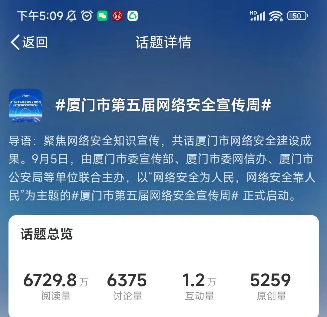 9月17日 由厦门市委网信办牵头 全市15家单位共同主办的 厦门市第五届网络安全宣传周活动 圆满落幕 活动期间 全市各区各部门 集中发力、精心组织 共开展各类线上线下 宣传活动900余场次
