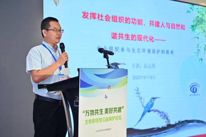 厦门市观鸟协会会长彭志伟分享了社会组织参与生态环境保护的探索,他呼吁充分发挥社会组织保护多样生物的功能。