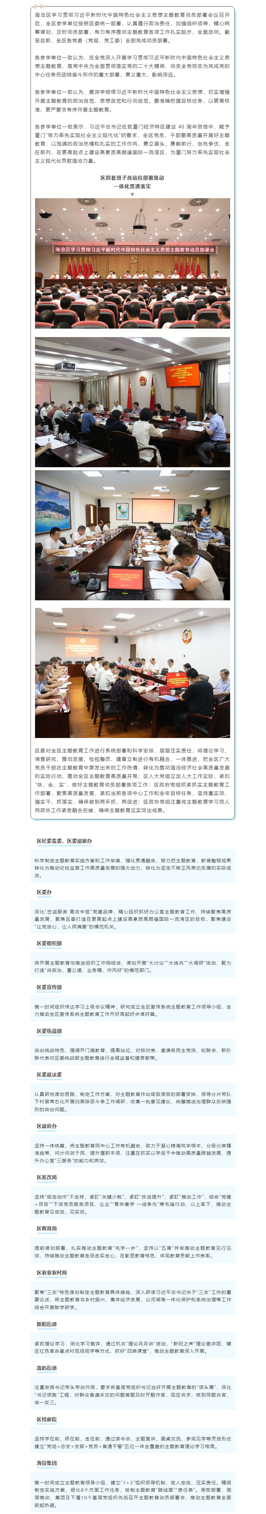 海沧区学习贯彻习近平新时代中国特色社会主义思想主题教育扎实起步有序推进