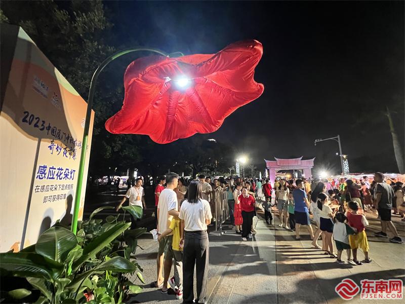2023中国厦门中秋旅游嘉年华奇妙夜市集与文化节开幕式文艺演出同期举行。东南网记者 卢超颖 摄 “文旅融合,主客共享”,2023中国厦门中秋旅游嘉年华奇妙夜市集与文化节开幕式文艺演出同期举行。活动突出传承弘扬民族优秀传统文化主题,以厦门非遗民俗博饼为文化内核,推出仿古市集。“文市·非遗小剧场”“旅市·乐活市集”“潮市·奇妙街头”“食市·中秋月宴”四个区域带来“中秋奇妙游”沉浸式体验。非遗传承人现场展示非遗技艺,香道、珠绣、影雕、厦门中秋旅游嘉年华文创衍生品、厦门博物馆等特色文创品对传统文化进行创新性转化;旅游企业围绕“金秋好运来,乐活厦门游”主题推出了8大系列主题产品,现场进行温泉门票、酒店套餐等优选好物的让利酬宾,丰富了中秋旅游国庆市场旅游产品供给。尤其是近期备受年轻人青睐的汽车后备箱市集也进驻现场,吸引不少外地游客专程前来打卡。 |
