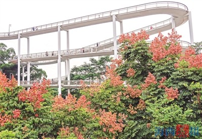 在山海健康步道塘边段,台湾栾树花开,传递着秋的消息。记者 陈理杰 摄 海西晨报讯(记者 彭怡郡)夏日暑气消退,秋日凉意渐起,“秋日使者”正悄悄地展露身姿。你瞧,台湾栾树上,金黄的栾花、红色的果实与绿叶交相辉映,多彩秋色尽显,展开一幅流金溢彩的秋日画卷。 一叶知秋,最先感知秋天信息的,是山海健康步道沿线的台湾栾树。蜿蜒步道两侧,茂密绿意间,一簇簇金黄色的花朵在暖阳下抖动着细碎的光芒,传递着“秋来了”的信号。台湾栾树花开往往只在枝头,一半金黄,一半碧绿,述说着秋与夏难舍难分的交替。 在和宁路、莲前西路、金尚路等路段,台湾栾树也是街头的颜值担当。树上的黄花还未落下,鲜红的硕果便已爬上枝头。一团团、一串串,鲜红的果子形似红灯笼,甚是可爱。满树繁华,跳跃的金黄搭配内敛的深红。这样入秋特有的美景,在厦门许多地方都可欣赏。 台湾栾树喜阳、易养护,作为厦门常见行道树,广泛用于道路绿化、公园绿化。据了解,栾树的记录最早出现在《山海经》:“大荒之中,有云雨之山,有木名曰栾。禹攻云雨,有赤石焉生栾。”据北宋时期的大科学家沈括所著《梦溪笔谈》中所记,汉朝时国人便已庭植栾树了。 台湾栾树枝叶茂密秀丽,一到初秋,金灿灿的花开满树,赏心悦目。但台湾栾树易受风雨影响,赏花期短,红果观赏期较长。果色会由初始的鲜艳动人逐渐转为淡红,有时直到厦门入冬还能见到绚烂的红果挂枝头。 |