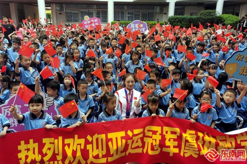 虞琳敏回到母校厦门市群惠小学与学弟学妹热情互动(东南网记者 刘玮 摄) 16日上午,虞琳敏也回到母校厦门市群惠小学,与学弟学妹热情互动,重温校园生活。“重新走进校园,回到自己曾经的教室,就像回到了小时候的样子,一下子回忆就涌上了心头。”虞琳敏在现场难掩激动,“看到学弟学妹们这么热烈地欢迎我,很开心也很激动,下一步我要更多地提升自己,在比赛中越战越勇,争取拿出更好的成绩。” |
