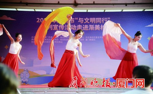 ■“爱心妈妈”带来精彩走秀表演。 厦门晚报讯(文/记者 李晓辉 通讯员 杨志英 林晶薇 张贤慧 图/记者 刘东华)歌声歌唱美好生活,手风琴演绎爱国情,“爱心妈妈”上演时尚秀……10月15日,2023年厦门市“与文明同行”系列活动在海沧区的首站活动来到“全国文明村”——海沧街道渐美村。现场不仅有文明知识互动分享,还有精彩的表演。 本次活动由市委文明办、海沧新时代文明实践中心、海沧区委宣传部及厦门日报社联合主办,海沧区委文明办、海沧街道新时代文明实践所和厦门晚报社联合承办,渐美村新时代文明实践站协办。 表演点燃现场热情 问答环节调动气氛 活动还未开始,就有不少村民早早来到现场。昨天下午3点半,开场舞《本草纲目》点燃现场热情。“现在我们村正在开展城中村现代化治理,抬头‘无线天’,出行道路宽敞,停车有序,龙舟池畔的环境干净浪漫,欢迎大家来健身燃烧卡路里。”村民许女士说。 建美小学学生带来朗诵《我们的文明》,讲述身边的文明事,呼吁大家再接再厉,助力文明海沧再上新台阶。村庄美,村民才艺也不赖,一曲闽南话歌曲对唱,不仅让本地村民陶醉,连听不懂闽南话的外地居民都听得很专注。小林刚搬到渐美村,他最大的感受是“这里环境干净,有安全感,村民都很友善”。 演出过程还穿插“与文明同行”文明海沧大问答环节,一下子将现场气氛调动起来,创建全国文明城市的基本知识也在游戏中深入人心。海沧区新时代文明实践中心以及海沧街道等部门工作人员也来到现场,宣传平安海沧、弘扬新风正气、倡导垃圾分类等文明创建内容。海沧区卫建局、人社局、红十字会等也带来健康义诊、应急救护、心理健康咨询、劳动社保政策咨询等。 |