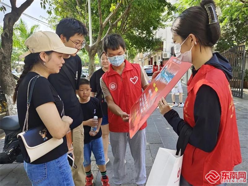 集美大学理学院大学生志愿者向市民游客讲述嘉庚故事。(集美区委文明办供图)