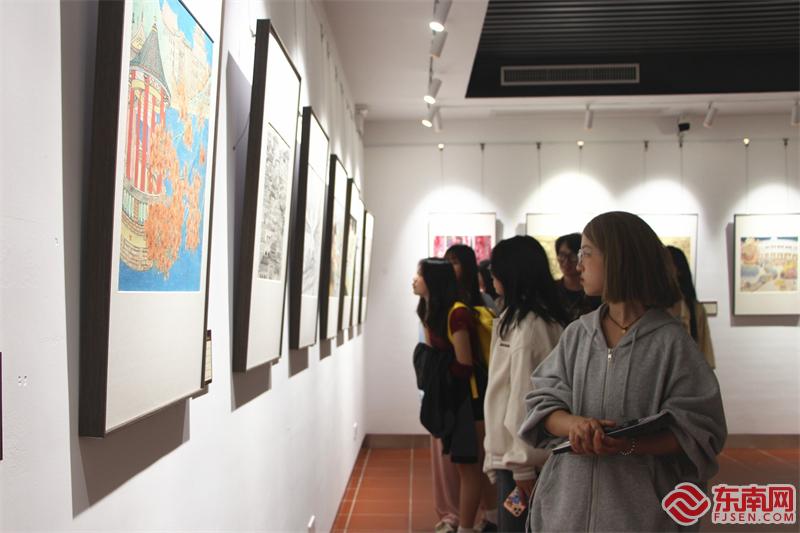 首届“嘉庚杯”福建省大学生美术作品大赛作品展现场(东南网记者 李霖 摄)