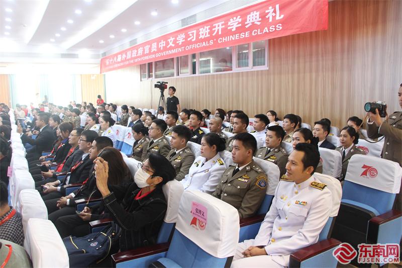 华侨大学第十八期外国政府官员中文学习班开学典礼(东南网记者 李霖 摄) 东南网10月20日讯(记者 李霖)“一个月前,我们是警察、军人、外交官……如今,我们有了新的身份——华侨大学第十八期外国政府官员中文学习班的学生。”10月20日上午,在华侨大学第十八期外国政府官员中文学习班开学典礼上,来自泰国司法部的公务员余茂德如是说道。 包括余茂德在内,在接下来的一年里,来自泰国、菲律宾等8个国家的100名政府官员将在华侨大学华文学院展开学习交流。 泰国泰中文化经济协会副会长乌泰·西那瓦表示,历届学成归国的学员用所学知识更好地服务泰国经济社会发展,做中泰友好交流的使者,携手促进泰中民心相通、推动构建人类命运共同体。华侨大学外国政府官员中文学习班不仅是个汉语学习项目,它更是一个平台,让泰国政府官员了解中国的发展模式,从而实现语言互通和民心相通。 据菲律宾驻厦门总领事馆总领事欧莉娜介绍,从2014年到2023年,华侨大学华文学院共帮助92名菲律宾政府官员通过学习中国语言和文化,加深了对菲中关系的了解。她表示,语言和文化交流是将不同背景的人们联系在一起的有效途径,为持久的友谊和和谐的关系铺平了道路,希望通过更多的人文交流,特别是语言学习和更多的学生合作来加强两国关系。 “国之交在于民相亲,民相亲在于心相通。心相通离不开语言和文化的相互学习和了解。”国务院侨办事务局相关负责人表示,今年是习近平总书记提出共建“一带一路”倡议十周年。“外国政府官员中文学习班”正是践行“一带一路”倡议的重要典范项目之一。各国政府官员全身心地投入中文和中华文化的学习当中,为促进中国和世界各国的友好往来起到了良好的带动和促进作用。 开学典礼现场,华侨大学校长吴剑平勉励新学员,要珍惜在华大的宝贵时光,努力学好中文,深入了解中国,学习借鉴中国式现代化的成功实践,寻找适合本国国情的发展道路,讲好“一带一路”上的中国故事、福建故事和华大故事,成为人类命运共同体的支持者、参与者与建设者。 据悉,从2005年创立至今,外国政府官员中文学习班已经培养了13个国家的1385名政府官员。第十八期外国政府官员中文学习班共招收学员100名,分别来自泰国、菲律宾、印度尼西亚、老挝、马来西亚、缅甸、安哥拉和阿曼苏丹国等8个国家。 新冠肺炎疫情期间,外国政府官员班第十五、十六期学员通过线上学习完成了学业。当天还举行了第十五、十六期学员结业证书颁发仪式。