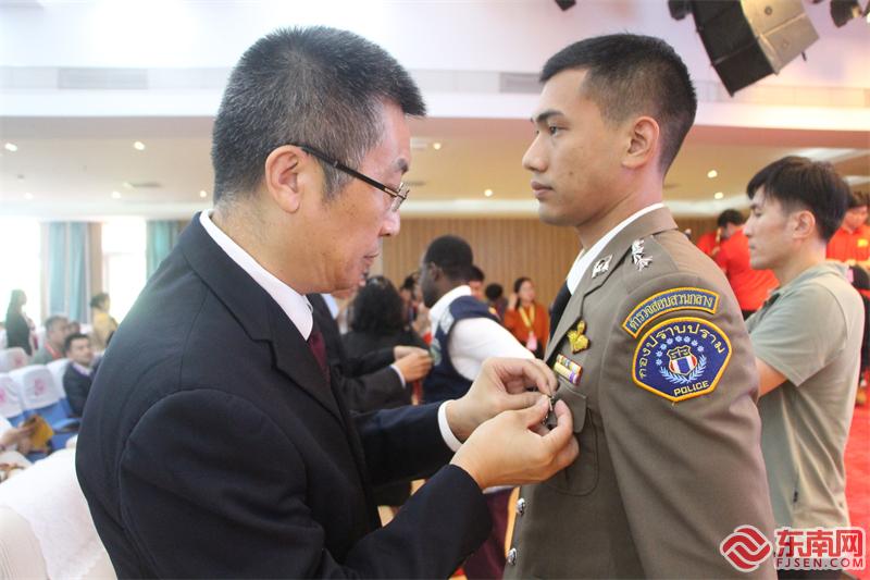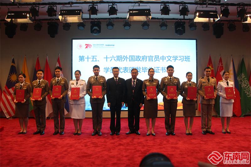 与会嘉宾为第十五、十六期外国政府官员中文学习班学员代表颁发结业证书(东南网记者 李霖 摄)