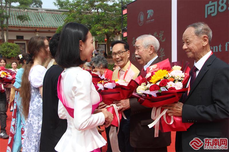 新生代表向85岁以上老校友集体献花(东南网记者 李霖 摄) 东南网10月20日讯(记者 李霖 通讯员 吴江辉 张婷玉)七秩薪传,春华秋实。今年是被誉为“侨生摇篮”的华侨大学华文学院(集美华侨学生补习学校)建校70周年。10月20日上午,华侨大学华文学院(集美华侨学生补习学校)建校70周年庆祝大会举办,海内外新老校友相聚一堂,共庆母校70华诞。 70年前,中央政府采纳陈嘉庚先生建议并委托陈嘉庚先生主持筹建集美华侨学生补习学校。建校初期,虽然条件十分艰苦,但师生协力,互帮互助,让集美华侨学生补习学校变成了侨生温馨的家园,赢得了“侨生摇篮”的美誉。1997年,为适应海外华文教育迅速发展的需要,国务院侨办将集美华侨学生补习学校成建制并入华侨大学,并在此基础上成立华文学院。70年来,华文学院(集美华侨学生补习学校)已为103个国家和地区培养了6万多名毕业生。 “我出生于印度尼西亚万隆一个华侨家庭。1960年,海外发生排华风潮,大批侨生涌入侨校学习,学生骤增,又适逢国内三年困难时期,师生经常吃不饱。”1960级香港校友、香港金轮集团董事长王钦贤代表校友发言,回忆在母校求学的难忘岁月。他说,当时,母校的领导和老师们对归国侨生关怀备至,让他们深切感受到生活在祖国的温暖,从而激发大家在思想、学习等方面取得更大的进步。“我们这些当年的青年学子转眼间年过花甲。但是,母校的这段生活,已如雕刻版成为我们脑海中一幅永不褪色的画卷。” “老师非常关心侨生,我记得每天晚上晚自修,都会安排不同学科的老师轮流来教室,给大家补习文化课。老师还会带我们到家里吃饭。就是这样一个个夜晚,这样一种近乎家人的关系,把我们和侨校紧紧维系在一起。”1978级校友、香港太平绅士周联侨同样作为校友代表上台发言。短短一页半的致辞稿,他用笔改了又改,在空白的间隙里挤进了满满的在校生活回忆,在第一页的开头写上了五个字——“一世侨校情”。他说,如今获得的成就,与当年侨校的培养密不可分,“我们将继续牢记母校老师的教诲,为联系海内外华侨,为祖国的繁荣昌盛作出自己的贡献”。 庆祝大会上,华侨大学党委书记徐西鹏致辞表示,华文学院(集美华侨学生补习学校)已成为华侨大学践行“为侨服务、传播中华文化”办学使命的重要阵地,更成为华侨大学一张闪亮的名片。他希望华文学院广大师生以70周年华诞为新的起点,围绕践行新时代新征程新的文化使命,弘扬优良传统,赓续嘉庚精神,更加奋发有为抓好各项事业,更加积极主动发挥特色优势,更加坚定自信讲好中国故事、传播好中国声音,培养更多时代新人和友好使者,为促进中外文明交流互鉴、推动构建人类命运共同体作出新的更大贡献。 今年是共建“一带一路”倡议提出十周年。庆祝大会上,华文学院联合厦门卫视出品的《“一带一路”我带路》系列视频正式发布。该系列短视频以华侨大学留学生的视角讲述“一带一路”大背景下自己和家乡因为“一带一路”蜕变的故事。 华侨大学校长吴剑平主持庆祝大会。北京华文学院院长张东浩、厦门市集美区区长倪杰、泰国泰中文化经济协会副会长乌泰•西那瓦、菲律宾驻厦门总领事馆总领事欧莉娜、泰王国驻厦门总领事馆副总领事冰亿莲,暨南大学华文学院、昆明华文学校、广西华侨学校等院校领导,菲律宾华教中心等海外华教机构负责人以及海内外各地校友会代表等800余人参加庆祝大会。 |