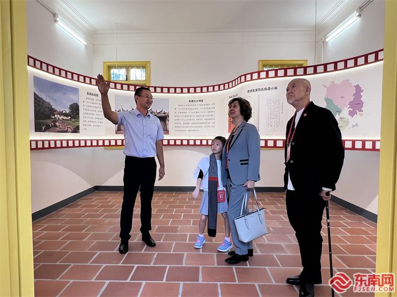 陈嘉庚先生孙女陈佩仪,陈文确、陈六使家族后裔陈锡福等参观“‘嘉’风‘嘉’训”展览(东南网记者 李霖 摄)