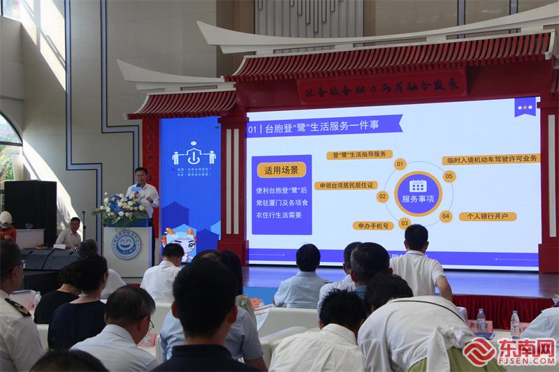 集美区行政审批管理局三级调研员杨志伟详细介绍了集美区政务服务台胞台企10项“一件事一次办”套餐内容。(东南网记者 李霖 摄)