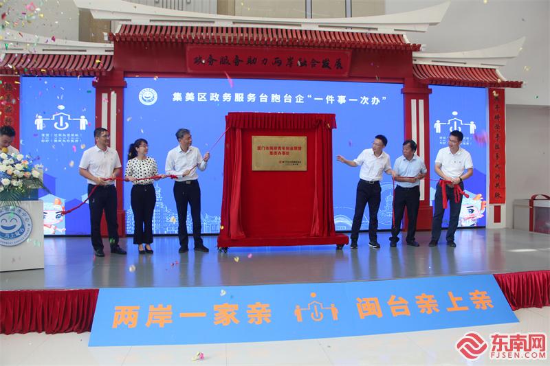厦门市两岸青年创业联盟集美办事处揭牌(东南网记者 李霖 摄) 现场,厦门市两岸青年创业联盟集美办事处正式揭牌,落户集美区政务服务中心“阿集”台胞服务驿站,为两岸青年融合发展打造交流新平台,同时也为台青登“鹭”创业提供全方位支持。 会后,参会台胞前往集美区政务服务中心参观“阿集”台胞服务驿站,并沉浸式体验政务服务办理流程。来自台湾基隆的谢佳韦刚来厦一个多月,当天,她在“阿集”台胞服务驿站遇到了之前为她办理金融卡的银行职员,便带着一些问题前来请教。“来这边就直接一次性把全部的事情都办好的话,对所有台胞来说,真的非常便利。”谢佳韦说,“对于想来祖国大陆这边生活的同胞们,也鼓励他们过来看看,了解我们这边的生活,两岸之间能有更好的交流。” 据悉,“阿集”台胞服务驿站于2020年10月29日设立,是厦门首个设在政务服务中心的“台胞服务驿站”。在此基础上,集美区行政审批管理局和厦门市行政审批管理局积极践行“两岸一家亲”理念,不断提升“阿集”台胞服务驿站的服务水平,通过多部门联动,进行事项集成、流程再造,解决了台胞台企登陆后办事多头跑、多地跑、来回跑问题,让台胞“进一家门,办所有事”,持续擦亮“阿集”台胞服务驿站品牌,助力打造台胞台企登陆的“第一家园”。今后,集美区将继续深化政务服务台胞台企“一件事一次办”集成改革,不断拓展更多政务服务“一件事一次办”集成套餐,探索为台胞台企服务新举措。 本次活动由厦门市委深改办、厦门市行政审批管理局、厦门市台港澳事务办公室、厦门市台湾同胞联谊会共同指导,集美区行政审批管理局、集美区台港澳事务办公室、集美区两岸融合发展中心联合主办,集美区税务局、厦门银行杏林支行、集美两岸青少年发展中心、聚融壹家台湾青年双创基地协办。