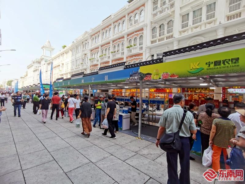 111家宁夏农业企业集中展示展销(东南网记者 刘玮 摄) 在中山路1500平方米展览展示专区,111家宁夏农业企业集中展示展销葡萄酒、枸杞、牛奶、肉牛、滩羊、冷凉蔬菜、马铃薯、菌菇、优质粮油、预制菜等宁夏名优特色农产品和精深加工制品,全面展示宁夏乡村振兴、现代农业发展成果,助力宁夏“六特”产业等名优特色农产品进一步走向福建和全国大市场。