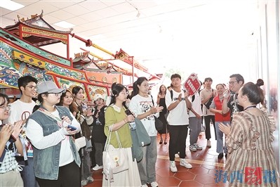 50多名学生走进厦港民俗文化传习中心。记者 唐光峰 摄 海西晨报讯(记者 柯小娇)天风海涛,风光旖旎。2023年金鸡百花电影节即将开幕,思明街头涌动着电影节的氛围。 近日,“想见你,我与思明有约——打卡我最喜爱的‘思明好所在’特别活动”第二场活动如约而至。来自福州大学厦门工艺美术学院、厦门城市职业学院的50多名学生走进沙坡尾等热门影视取景地,感受光影思明,邂逅璀璨星光。 演武大桥观景平台的金鸡百花星光海岸已成为厦门的电影文化地标,星光石上展示着多位电影艺术家手模和签名。“金鸡百花星光海岸让我近距离感受到了厦门影视产业的繁荣和思明区的艺术氛围,厦门版的‘星光大道’展示了厦门文旅的特色。”厦门城市职业学院刘厶语说。 “沙坡尾有纵横交错又相互贯通的老巷,也有古朴的建筑和特色的美食,太出片了!”同学们来到清新又文艺的沙坡尾,迎面而来的是如画风景。同样位于沙坡尾的厦港民俗文化传习中心里,精致的王船寄托着旧时傍海而生的人们对海洋的敬畏和深情,同学们踏上了一场穿越时空的民俗之旅。 在南普陀寺,同学们在绘声绘色的讲解中感受千年古刹的魅力。在金榜公园,同学们还深切体验了一把老厦门独特的“古早味”——茶桌仔。 本次活动由思明区委宣传部、思明区融媒体中心主办,海西晨报社承办。本周末,打卡“思明好所在”活动还将走进溪岸路、华新路、中山公园和园林植物园等地,带领市民赏思明美景,看城市发展。 相关新闻 会展周边道路明起限行 海西晨报讯(记者 彭怡郡 通讯员 齐铭)2023年中国金鸡百花电影节将于11月1日至4日在厦门举办。闽南大戏院、会展中心周边道路将采取交通限行措施。 11月1日17时30分至22时,前埔北路展鸿路路口至领事馆路路口段、展鸿路前埔北路路口至展鸿北路路口段,仅持有通行证的车辆可通行。 11月4日14时至24时,会展北路、展鸿路会展北路路口至展鸿南路路口段、环岛东路会展北路路口至会展南路路口两侧辅道、会展南路环岛东路路口至会展南三路路口段,仅持有通行证的车辆可通行。 11月4日14时至24时,持有通行证的车辆在会展北路会展路路口至环岛东路路口段实行由西往东(即会展路往环岛东路方向)单向通行,禁止由东向西行驶;会展南路环岛东路路口至会展南三路路口段实行由东往西(即环岛东路往会展路方向)单向通行,禁止由西往东行驶。 莲前开展景区食安宣传 海西晨报讯(记者 林雅婷)近日,“护航金鸡 食安先行”2023年旅游景区沉浸式食品安全宣传活动在巨鹏飞观音山游乐区开展。活动由莲前街道办事处、莲前街道食安办、莲前市场监督管理所共同举办。通过宣传摊位、系列展板、有奖问答和趣味谜语等,市民游客学习多项食安知识。 为迎接2023年中国金鸡百花电影节系列活动,提升餐饮接待单位经营能力,保障饮食安全,莲前街道食安办、莲前市场监督管理所还组织餐饮单位后厨负责人20余人,到闽南大院开展食品安全现场观摩和交流。 |