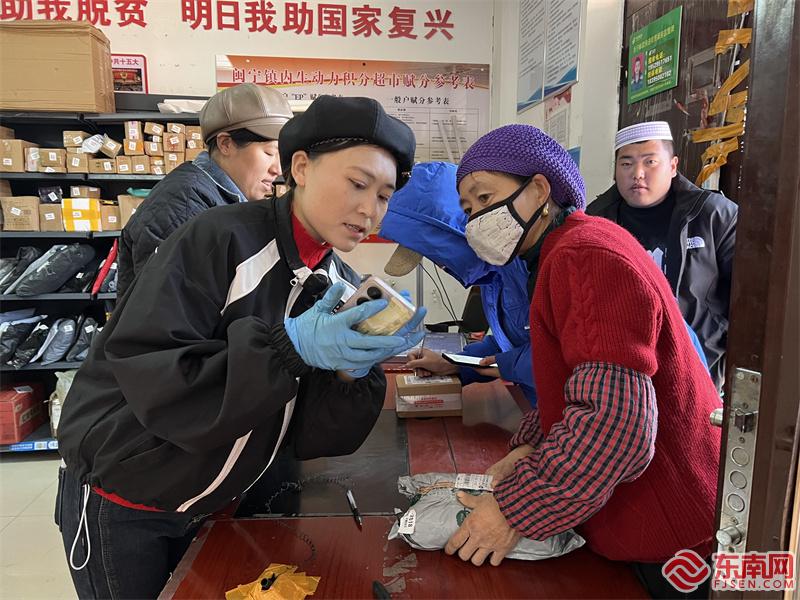 在积分超市旁的玉海村兜底保障服务中心,工作人员耐心地为村民们解释包裹的内容和送达的日期。(东南网记者 卢超颖 摄)