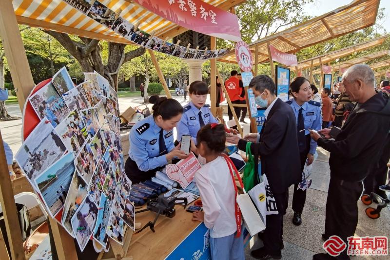 各个展位上参与活动的群众络绎不绝(东南网记者 刘玮 摄) 活动现场发布了全新的平安厦门logo、IP形象“安萌”,以及平安文化节主题曲《你若安好》。此外,还有闽南童谣、醒狮说唱、答嘴鼓……一系列以平安为主题的节目展演,为群众献上了一场平安、法治文化盛宴。