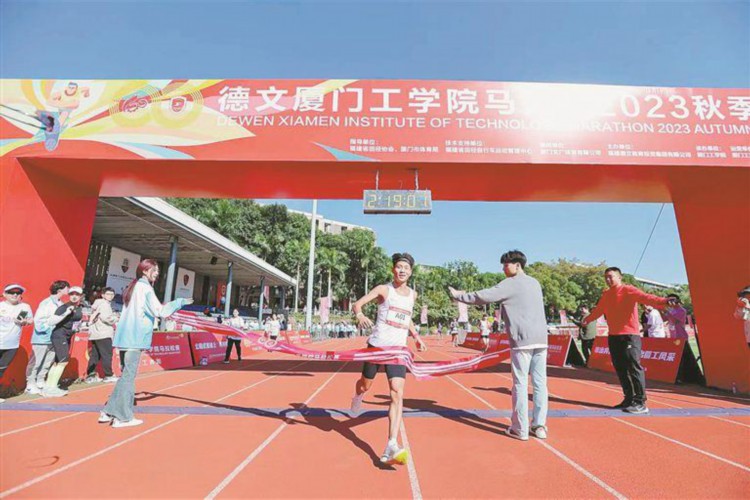 杭州亚运会男子马拉松冠军何杰在比赛中率先冲线。(记者 杨进福 摄) 厦门日报讯 (记者 应洁)高校师生和亚运会冠军一起跑马拉松!昨日上午,德文厦门工学院马拉松2023秋季赛在美丽的校园里鸣枪开跑。杭州亚运会男子马拉松冠军何杰、杭州亚运会龙舟项目冠军陈芳佳、全国多项马拉松赛事女子组冠军焦安静等,出现在赛道上,和师生、校友及社会参赛者们沿着公园式的高校赛道尽情奔跑,在红花绿荫中享受运动带来的激情与欢乐。 据介绍,本次比赛是全国唯一一场获得C类认证的高校马拉松赛事,也是厦门市唯一一场公园式高校马拉松,比赛设置了马拉松、半程马拉松、欢乐跑,并配套10×10千米接力赛、环校跑与亲子跑等项目。 最终,何杰以2小时18分59秒获得马拉松男子组冠军,焦安静以1小时23分37秒获得半程马拉松女子组冠军。 |