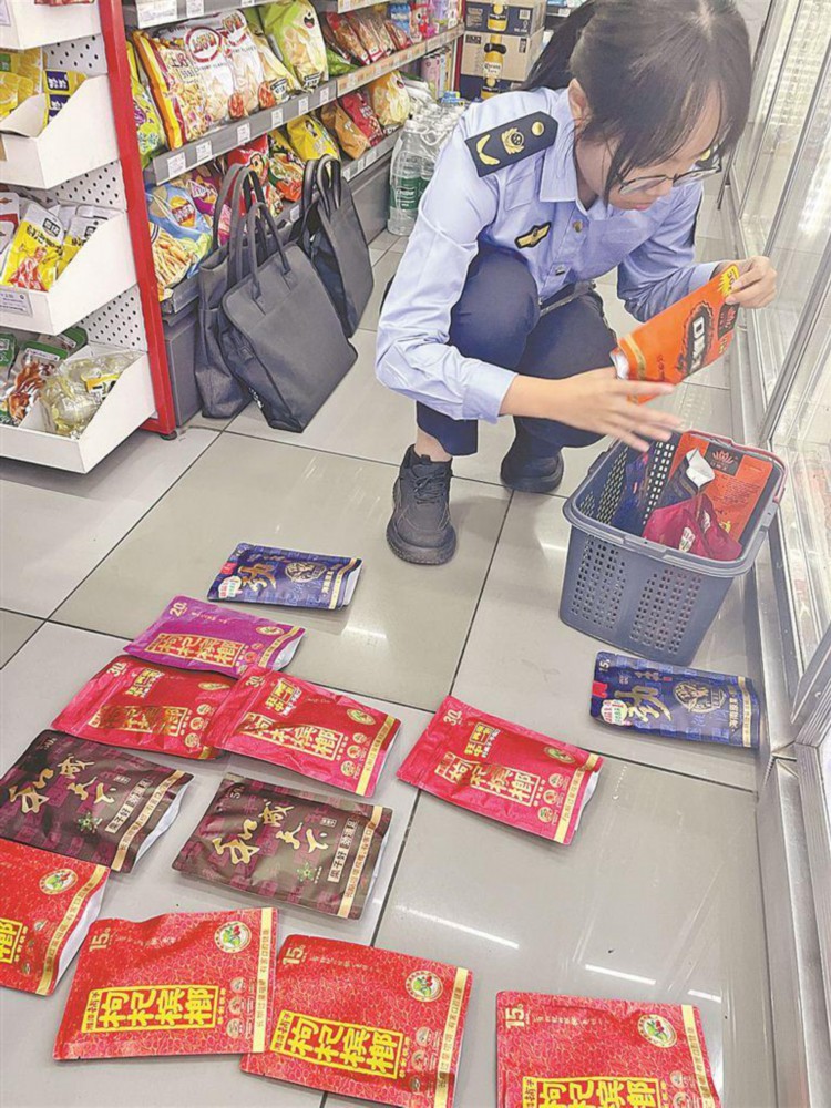 执法人员在美宜佳便利店查获槟榔。(记者 陈泥 摄) 厦门日报讯(记者 陈泥 通讯员 黄丹薇 徐强华 范子铭 孔凡洁)槟榔禁售、禁食规定在厦门执行已有27年,但仍有商家抱着侥幸心理在偷偷售卖。近日,市场监管部门在全市部署专项检查行动,对存在销售槟榔行为的商家立案查处,并当场销毁待售的槟榔产品。 昨日上午,思明区梧村市场监管所执法人员首先来到湖滨东路42-2号的美宜佳便利店。一见到执法人员,经营者慌慌张张地准备往收银台下方藏东西,被阻止后,才不得不拿出了一个装满槟榔的塑料筐。经清点,里面共有19包袋装槟榔,零售价从10元/包到60元/包不等。经营者表示,这些槟榔产品都是一名外地女子骑着电动车上门推销的,购买者主要是一些外地客人。执法人员现场开具了《询问通知书》,对商家立案调查,并监督经营者当场销毁这些待售的槟榔。 去年以来,思明区市场监管部门多次开展槟榔专项整治行动,至今已立案查处41起,案值1.74万元,捣毁1处槟榔批发窝点,现场销毁了近35公斤槟榔。 在湖里区,禾山市场监管所日前也根据举报线索,对钟岭路一家商场进行突击检查。在该店货架上发现有19袋槟榔产品在售,执法人员依法予以扣押。案发后,当事人积极配合调查,主动提交进货票据,19袋槟榔目前已进行销毁处置。禾山市场监管所也已对涉事商家依法进行立案调查。 背景 槟榔是一级致癌物 槟榔被世界卫生组织列为一级致癌物。根据厦门市人民政府1996年出台的《厦门市禁止生产、销售和食用槟榔规定》,任何单位和个人不得在厦门市辖区内生产、销售和食用槟榔,“违反本规定,在本市生产、销售槟榔的,由市各级工商行政管理部门责令停止违法行为,并处以1000元以上10000元以下罚款”。 在厦门,“槟榔”还是外卖平台的“禁词”。去年,厦门市场监管部门约谈美团、饿了么等平台,加大对外卖平台销售槟榔制品的监管力度。目前,以“槟榔”为关键词在厦门外卖平台上搜索,会提示“抱歉,无法显示相关结果”。 近年来,我国对槟榔销售的管理日趋严格,已有多地明确禁售槟榔。2020年,国家市场监督管理总局最新修订的《食品生产许可分类目录》没有将槟榔列入,这意味着槟榔不再作为食品来管理,槟榔生产加工企业以后不能申领食品生产许可证。 |