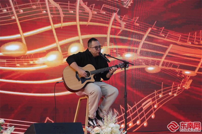 厦门集美市政集团在职党员陈靖洧自弹自唱《最初的梦想》(东南网记者 李霖 摄)