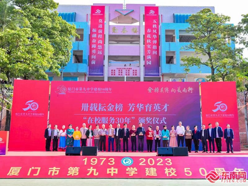 厦门市第九中学为在校服务30年教职工颁奖 (厦门市第九中学 供图)