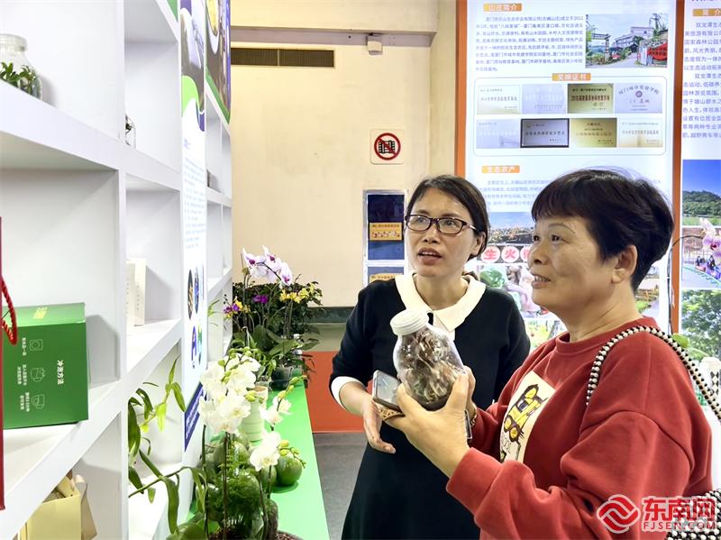 2023年海峡两岸现代农业博览会·海峡两岸花卉博览会集美馆(东南网记者 李霖 摄) 东南网11月30日讯(记者 李霖)11月30日,2023年海峡两岸现代农业博览会·海峡两岸花卉博览会(以下简称“海峡两岸农博会·花博会”)在厦门国际会展中心拉开帷幕。其中,集美馆集中展示集美区特色农产品,同时展示了该区文旅研学、乡村振兴丰硕成果。 走进主展馆,以嘉庚建筑为原型,飞檐翘脊、红柱白墙的集美馆尤为吸睛。据了解,集美馆以“集天下好友 逛和美乡村”为主题,分为乡村振兴、特色农业、文旅研学三个展区,共120平方米,组织花卉、果蔬、文旅等方面的10家企业参展。 现场,集美馆人潮涌动。仙景芋、田头米、铁皮石斛、有机黄瓜等特色农产品吸引了众多客商和市民驻足观看、品尝和购买。 参展商工作人员叶燕红告诉记者,该公司已经开发了铁皮石斛、灵芝等数十种食药物质产品。此次除了有代用茶、面膜、压片糖果等保健产品参展,还现场售卖温室培育的铁皮石斛、金线莲种苗,“市民可以买回去自己移栽、种植,用来炖汤、榨汁,也可以生嚼。” 蝴蝶兰造型独特、花期长,是室内家居装饰的宠儿。集美馆内外,蝴蝶兰组合盆栽“妆点”了展馆。“金蟾”“金丝雀”“杭州美女”“月亮公主”……参展商负责人池子明表示,此次特别精选了三十多个热销品种来参展,“我们希望通过园林造景的艺术手法,让大家看到蝴蝶兰的美,发现蝴蝶兰的更多应用场景。”池子明说,此次博览会也为花卉企业搭建了行业交流合作的平台,实现“以花会友”。 此外,集美馆乡村振兴版块展示了全区农业农村基本概括、试点示范村概括,以及集美嘉庚乡村振兴学堂的基本情况;文旅研学版块则介绍了古樾山庄、双龙潭生态运动景区、文源山现代农业示范园等文旅研学企业及其项目。