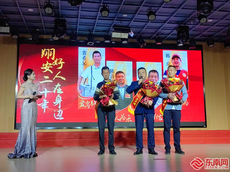 三位“翔安好人”到场与大家分享感悟(东南网记者 夏菁 摄) 榜样示范引领 凝聚向上向善力量 近年来,翔安区大力推进新时代公民道德建设,推动形成崇德向善、见贤思齐的社会氛围,让弘扬善举蔚然成风,让德善之花竞相绽放。 在翔安,就有这样一群人,他们来自各行各业,有公交司机,有医护人员,还有成功企业家,虽然职业不同,但是他们都有一颗向善之心,在平凡的岗位上作出不平凡的业绩,用大爱传递温暖。 今年是翔安建区20周年,为营造好人氛围,翔安区委文明办举办“翔安二十年,好人在身边”活动评选,最终选出20位“翔安好人”,为翔安建区二十年献礼。活动现场,邀请了爱岗敬业模范黄希呆、助人为乐模范陈清滨、见义勇为模范陈亮3位“翔安好人”到场与大家分享感悟,让爱传递,与善同行。 此外,活动还举行了2023年度翔安区“新乡贤”的表彰仪式,10位2023年度翔安区“新乡贤”登台亮相。他们是新思想、新知识的传播者、文明乡风的示范者、乡村振兴的领路者,更是乡村治理的参与者,长期奉献家乡,获得乡亲的认可,也赢得了现场观众的阵阵掌声。 据悉,此次活动由翔安区委文明办、翔安区新时代文明实践中心主办,翔安各镇(街)协办。